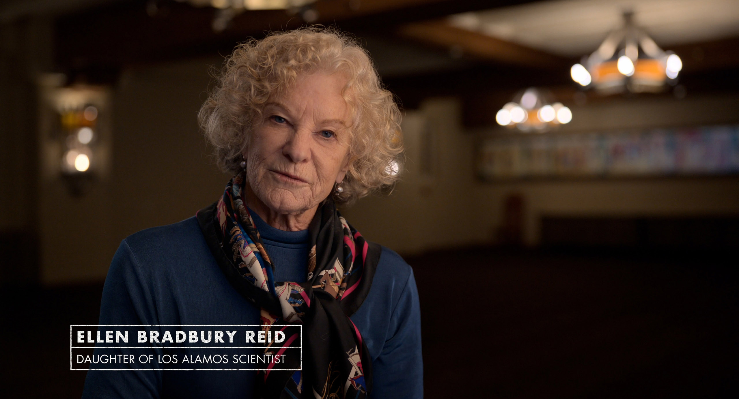 Interviewees are treated as storytellers, addressing the viewer directly with eyeline to camera. A sliding second camera allows for emphasis without breaking that relationship. Since we already knew we’d be filming at Oppenheimer’s Los Alamos home and other Manhattan Project sites, locations for the interviews were carefully chosen for their ability to feel historically plausible to the period, placing each storyteller in a space that carries its own sense of time and memory.